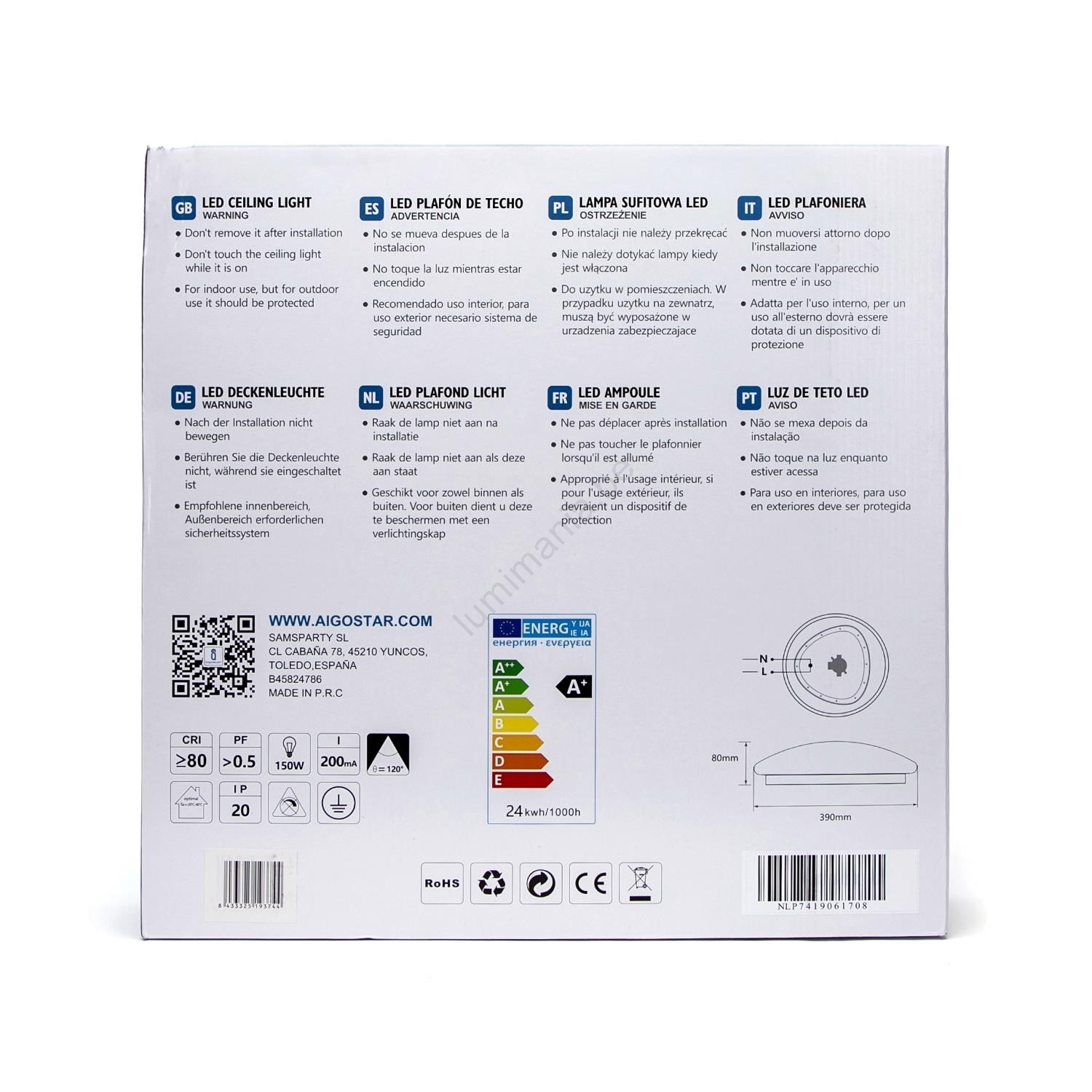 Aigostar - LED Plafond Lamp met Sensor LED/24W/230V 3000K