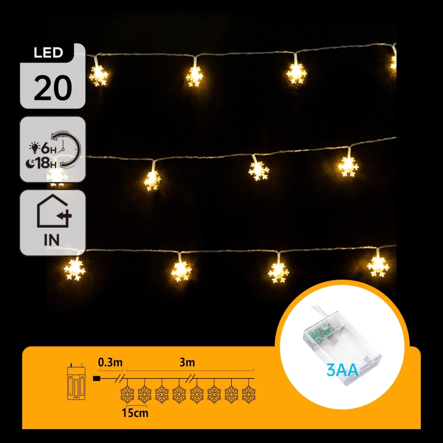 Aigostar - LED Kerst lichtsnoer 20xLED/3xAA 3,3m sneeuwvlokken