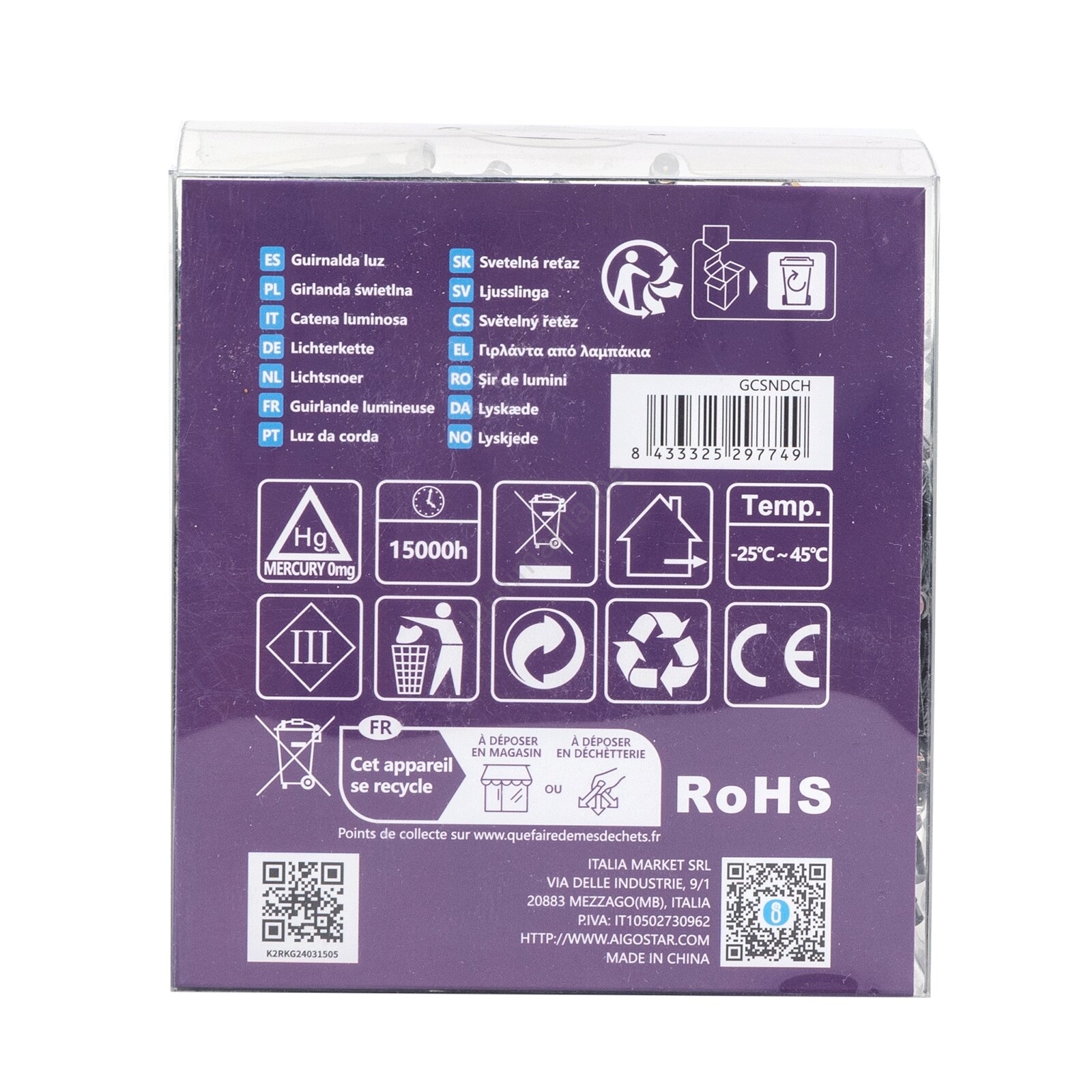 • Aigostar - LED lichtsnoer voor buiten 300xLED/8 functies 3xAA 15,3m IP44 meerkleurig