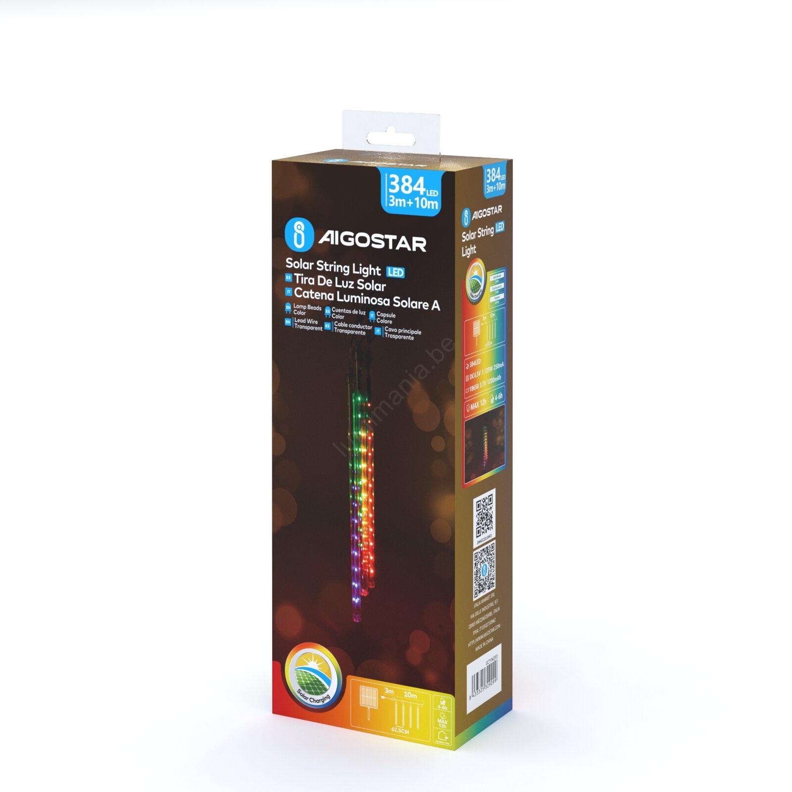 Aigostar - LED zonnenslinger 384xLED/13m IP65 1200 mAh meerkleurig