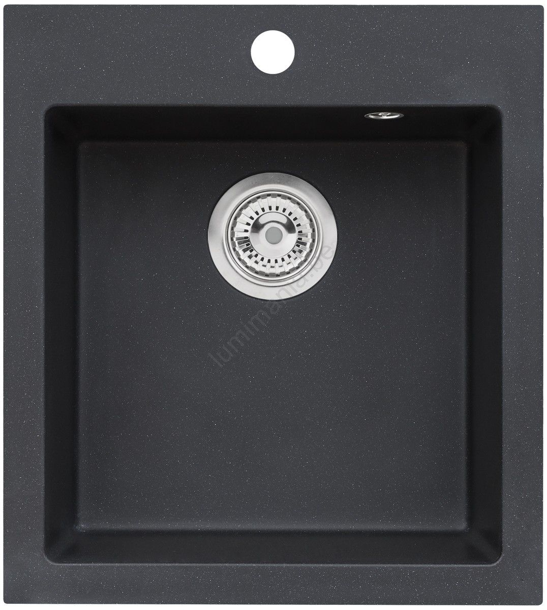 ALVEUS SETA737 - Keukenspoelbak CORTINA 50x45 cm + keukenkraan met flexibele uitloop TONIA 29,5 cm graniet/mat zwart