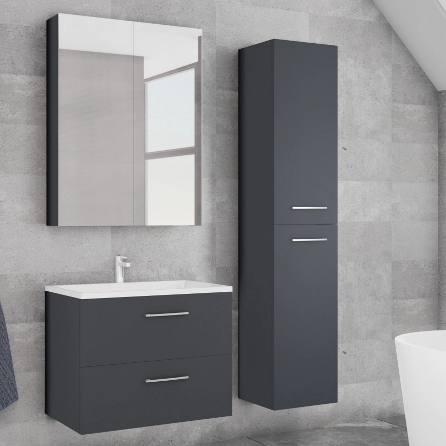Badmeubel KATE met wastafel + spiegelkast + wandkast antraciet