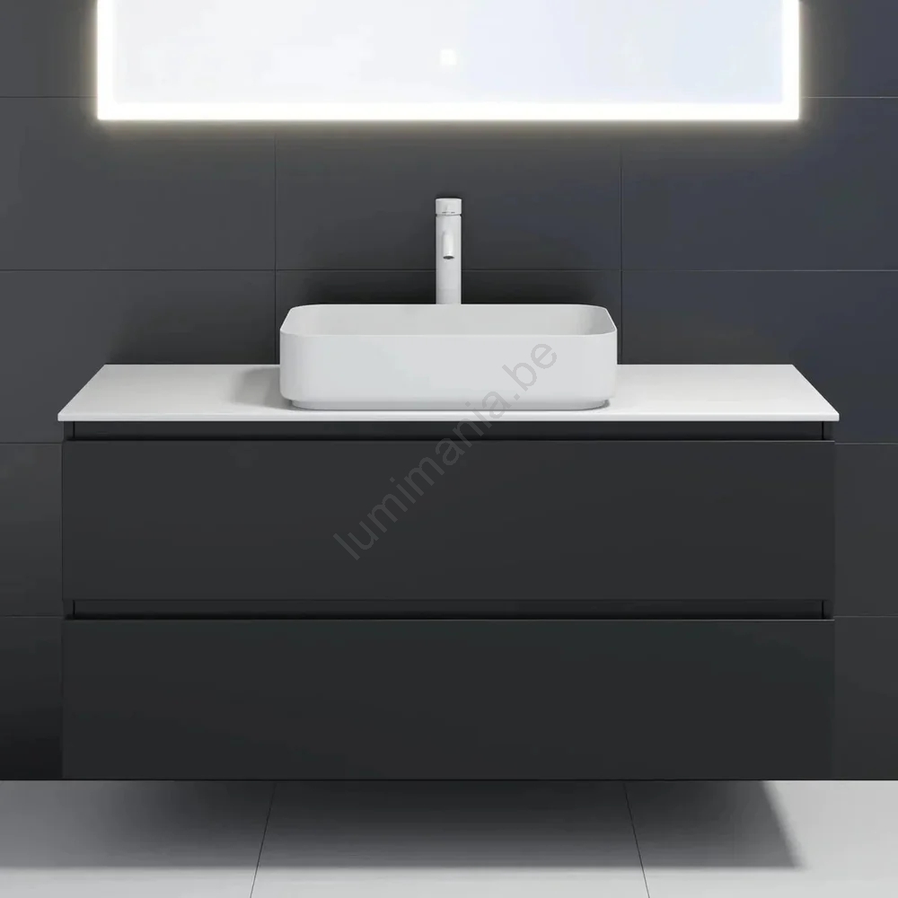 • De wastafel is bedoeld voor montage op het werkblad, waardoor flexibele plaatsering en combinatie met verschillende typen badkamerbladen mogelijk is.