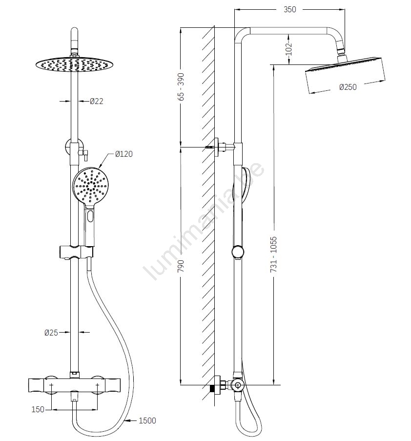 • Set bestaat uit een thermostatische kraan van massief messing.