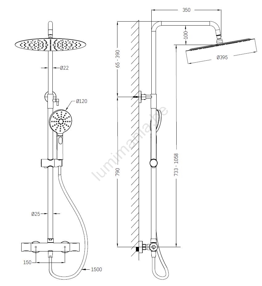 • Set bestaat uit een thermostatische kraan van massief messing.