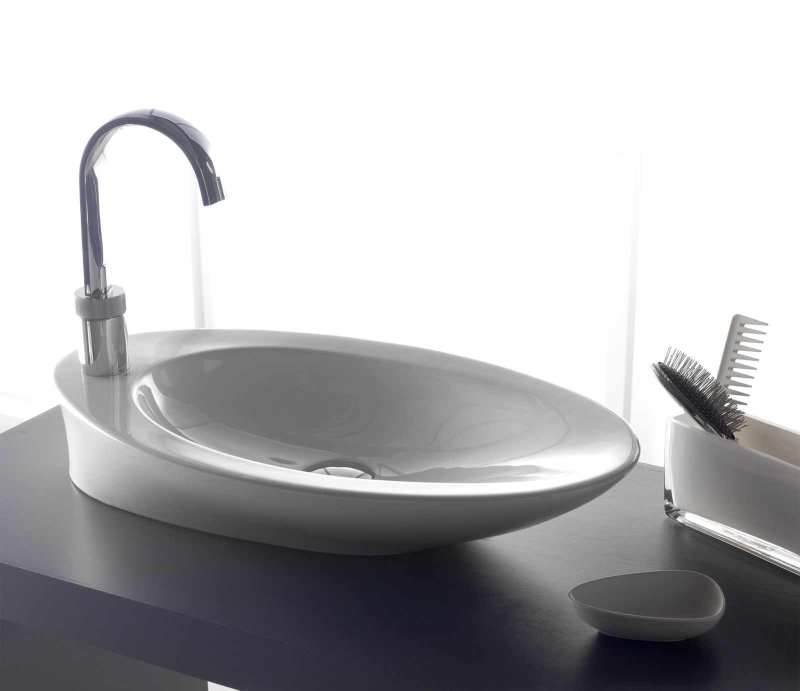 • De wastafel is geschikt voor plaatsing op een wastafelblad.