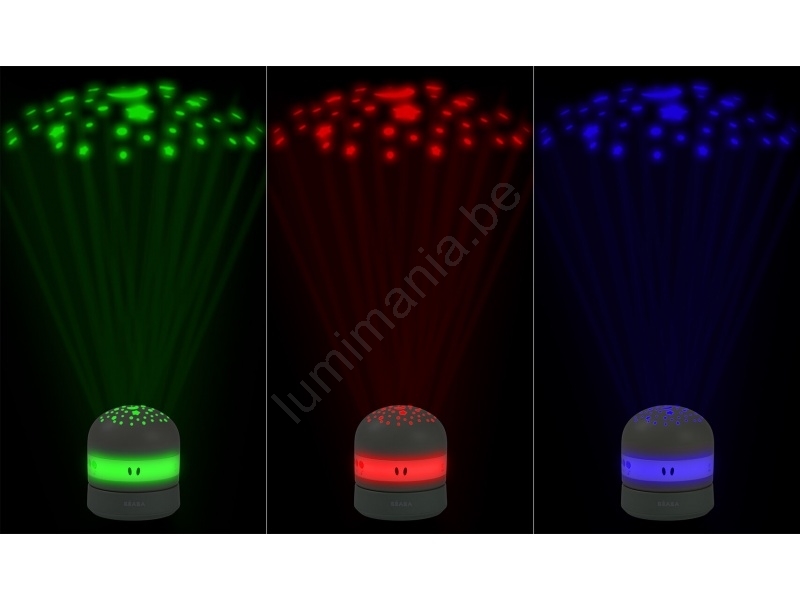 • De Beaba Pixie-projector is ontworpen om de kinderkamer te transformeren tot een ontspannende ruimte door een sterrenhemel op de muur en het plafond te projecteren.