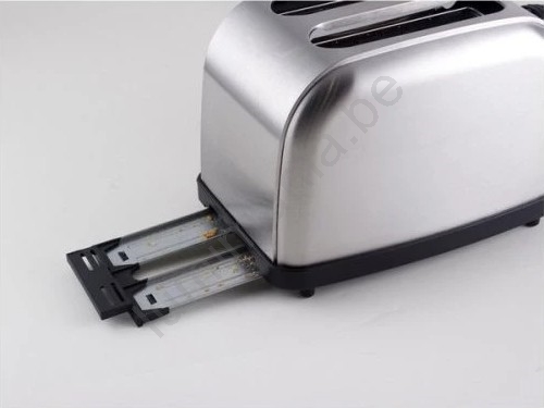 • Voor eenvoudig onderhoud is de broodrooster voorzien van een praktische uittrekbare kruimellade, en zijn stabiliteit op het aanrecht wordt verzekerd door antislipvoetjes.