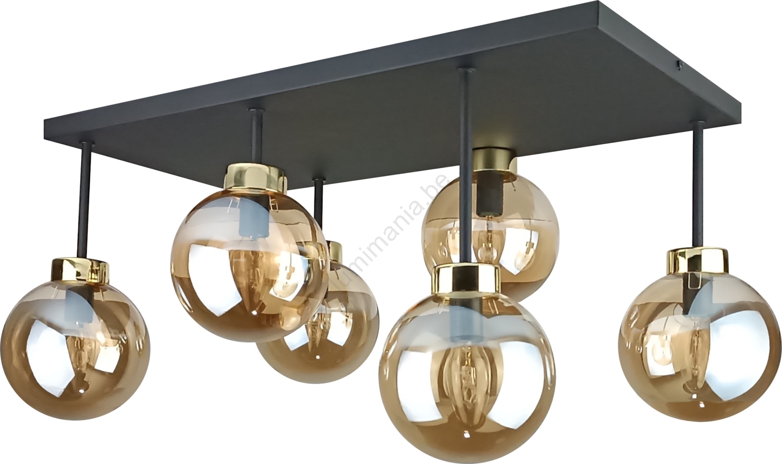 Bevestigde hanglamp DEA 6xE14/60W/230V zwart/goud/gerookt beige kenmerkt een mooi en functioneel ontwerp.  Voor het licht is een lamp met E14 fitting geschikt. Hier kunt u andere lampen tegen voordelige prijzen kopen. U heeft een interessante aanwinst voor uw woning.