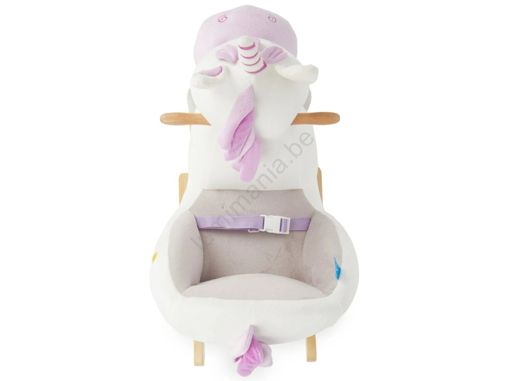 • De eenhoorn is uitgerust met een zacht, comfortabel gewatteerd zadel met veiligheidsgordel, die maximale comfort en bescherming biedt, zelfs voor de allerkleinsten.