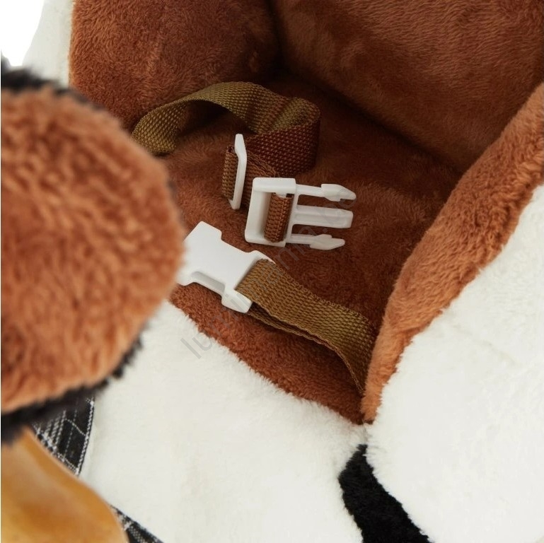 • De koe is uitgerust met een zacht, comfortabel gewatteerd zadel met veiligheidsgordel, wat maximale comfort en bescherming biedt, zelfs voor de allerkleinsten.