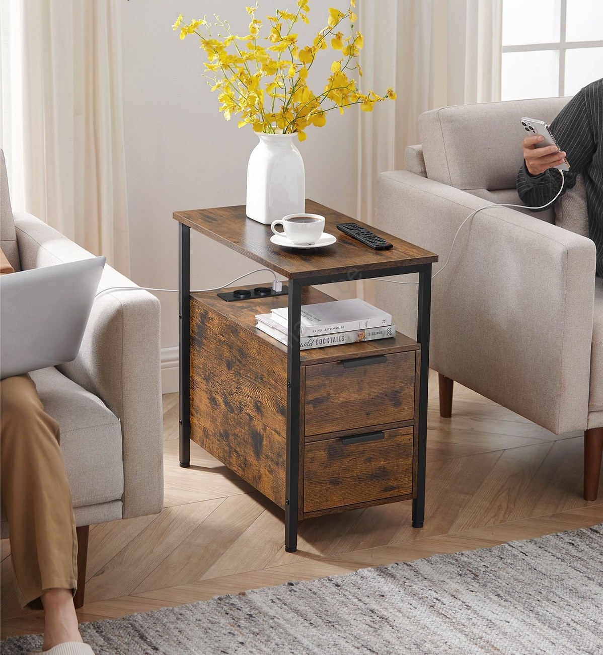 • Bijzettafel met geïntegreerde lades en USB-poorten ROD bruin/zwart