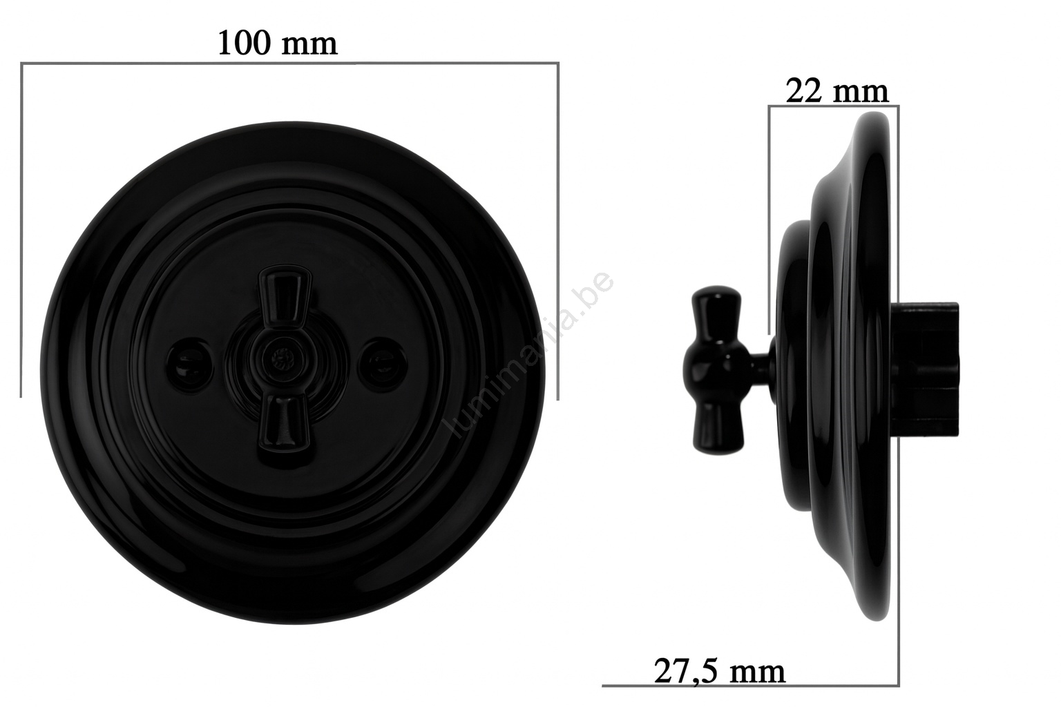 Bohemia-Design - Porseleinen retro-draaischakelaar met afdekraam nr. 7 zwart