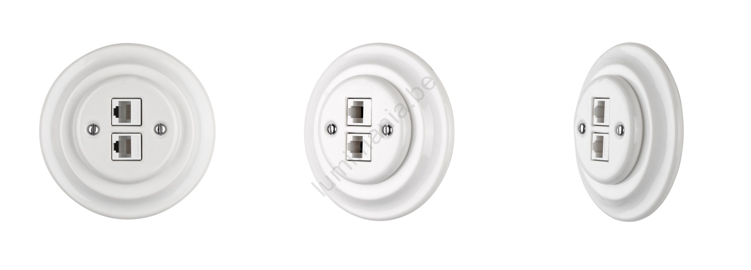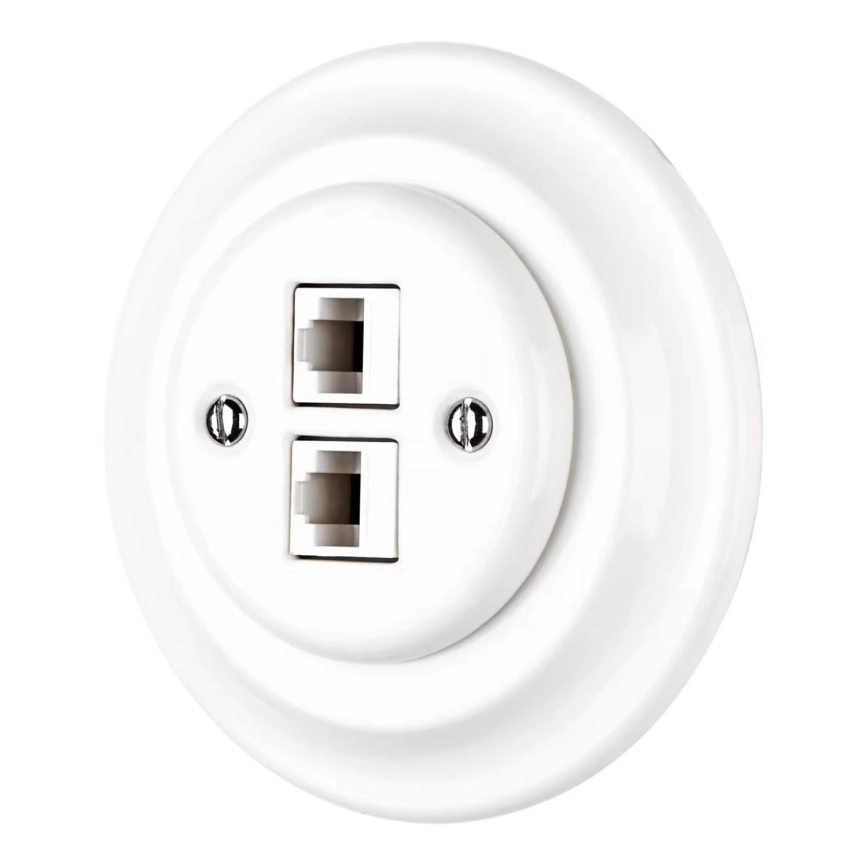 Bohemia-Design - Porseleinen retro Ethernet-wandcontactdoos met frame, 2x CAT.5E, wit