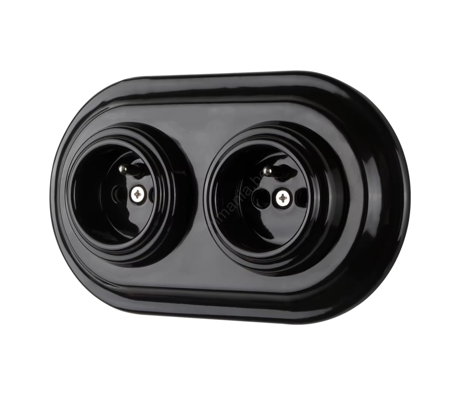 Bohemia-Design - Porseleinen retro wandcontactdoos voor huishoudelijk gebruik zonder afdekraam 250V/16A zwart