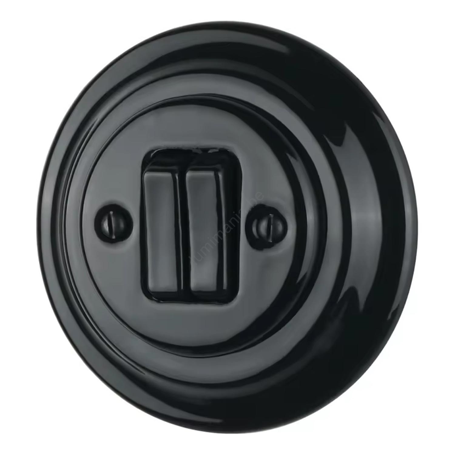 Bohemia-Design - Porseleinen retro dubbele schakelaar met frame nr. 5, zwart
