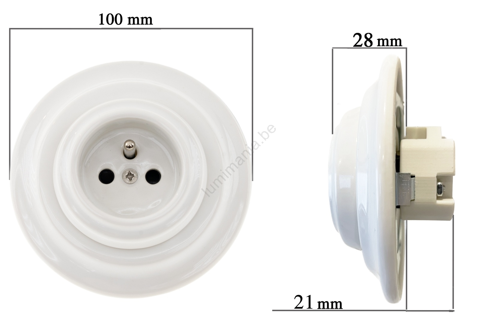 Bohemia-Design - Porseleinen retro stopcontact met afdekraam SCHUKO 250V/16A wit