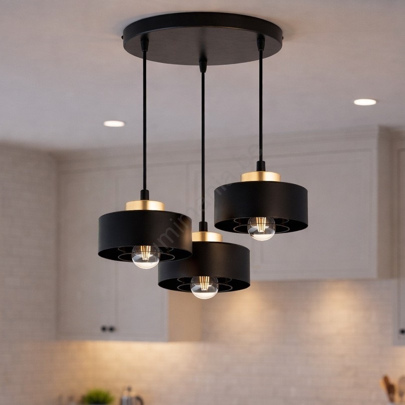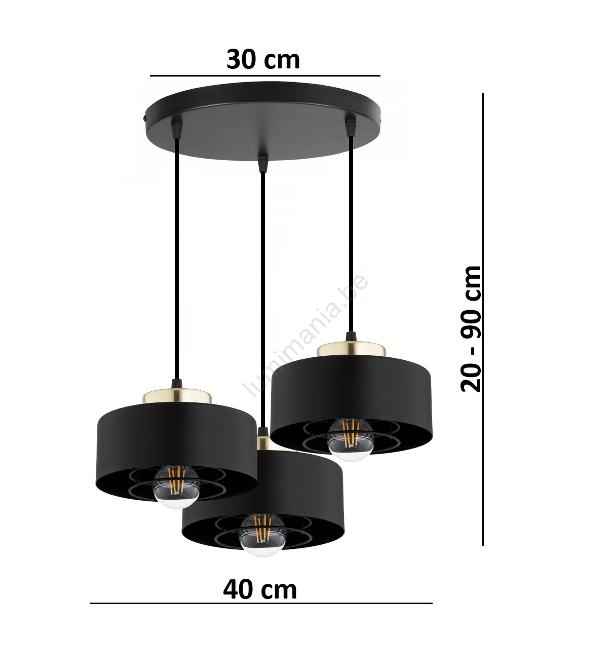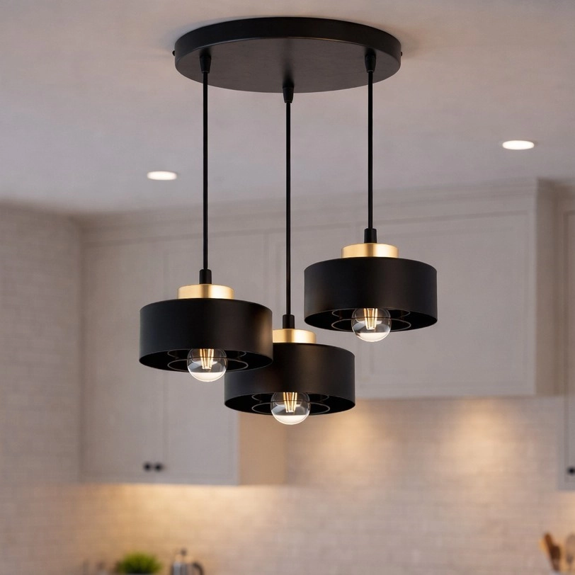 Brilagi - Hanglamp aan snoer 3xE27/60W/230V zwart/goud