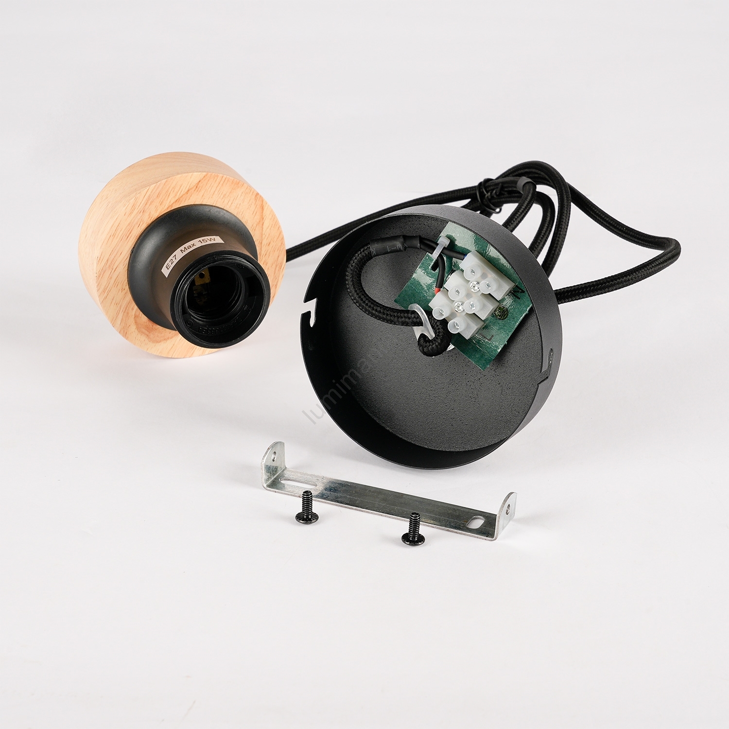 Brilagi - Hanglamp aan snoer BASKLITE 1xE27/15W/230V rubberhout/zwart