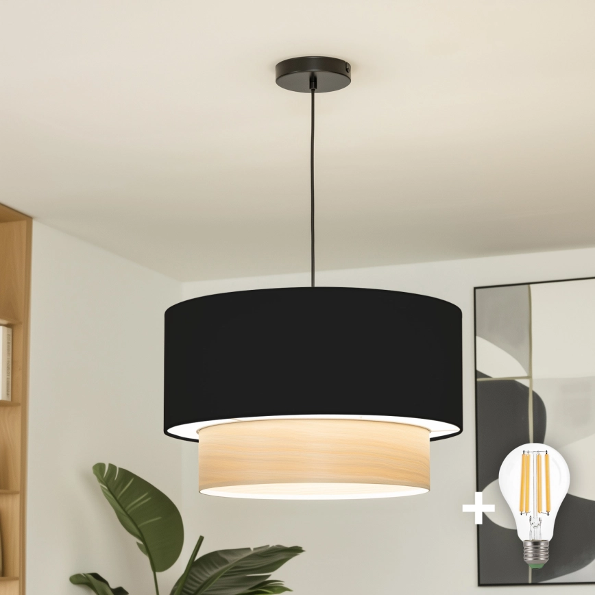 • Brilagi - LED-hanglamp aan kabel CERIA 1xE27/40W/230V Ø 50 cm zwart/beige