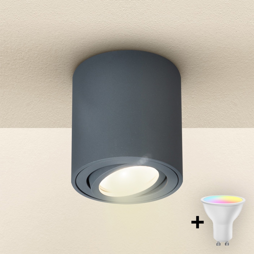 • Brilagi - LED RGBW dimbare spot MIA 1xGU10/4,8W/230V 3000K 84x80 mm antraciet + afstandsbediening