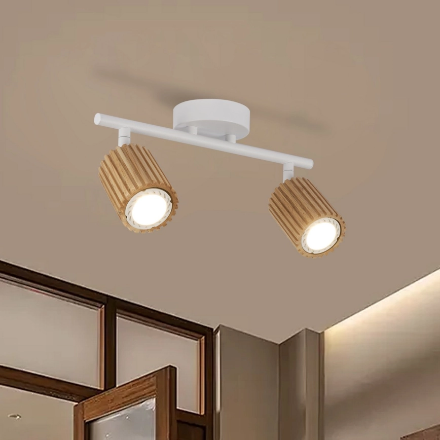 Brilagi - Plafondspot MODERN WOOD 2xGU10/8W/230V rubberhout/wit