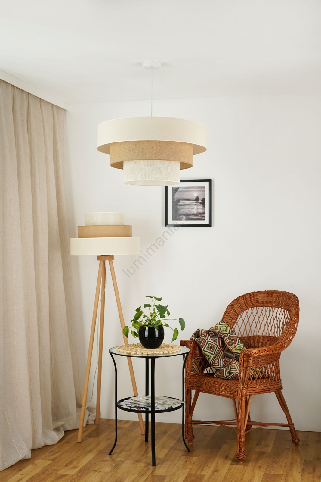 Jute is een natuurlijk en ecologisch materiaal dat perfect aansluit bij de trends van duurzaam design. Juten lampen combineren de ruwe eenvoud en elegantie van de natuur en creëren een warme en gezellige sfeer in elk interieur. Het is de ideale keuze voor mensen die waarde hechten aan ecologische oplossingen en elementen van de natuur in hun huis willen brengen. Met de keuze voor juten lampen legt u de nadruk op stijl, harmonie en zorg voor het milieu.