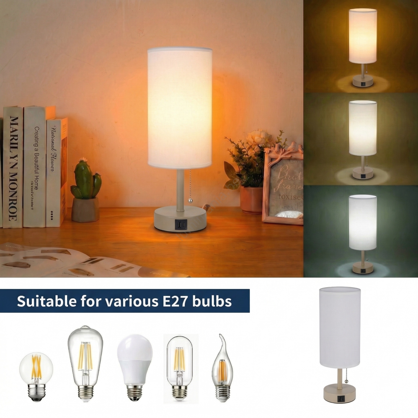 Brilagi - Tafellamp met USB-poort TABLON 1xE27/25W/230V beige/wit