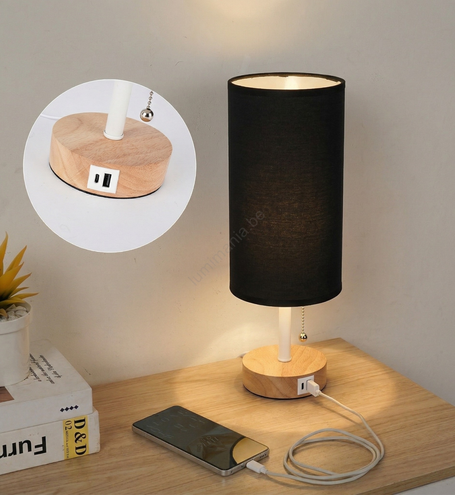 Brilagi - Tafellamp met USB-poort TABLON 1xE27/25W/230V eik/wit/zwart kenmerkt een mooi en functioneel ontwerp.  Voor het licht is een lamp met E27 fitting geschikt. Hier kunt u andere lampen tegen voordelige prijzen kopen. U heeft een interessante aanwinst voor uw woning.