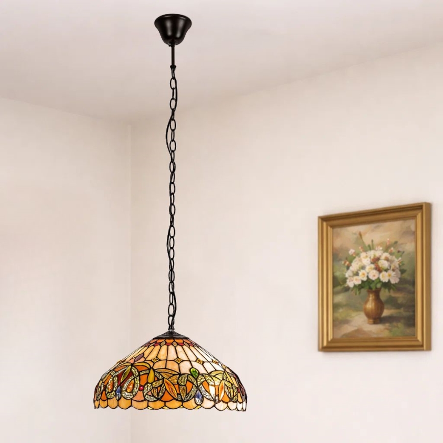 • Brilagi - Tiffany-stijl glas-in-lood kroonluchter met kettingophanging GARLAN 2xE27/60W/230V