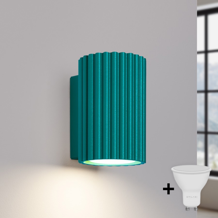 Brilagi - LED-wandlamp CRESTO 1xGU10/10W/230V 10 cm turkoois kenmerkt een mooi en functioneel ontwerp.  Voor het licht is een lamp met GU10 fitting geschikt. Hier kunt u andere lampen tegen voordelige prijzen kopen. U heeft een interessante aanwinst voor uw woning.