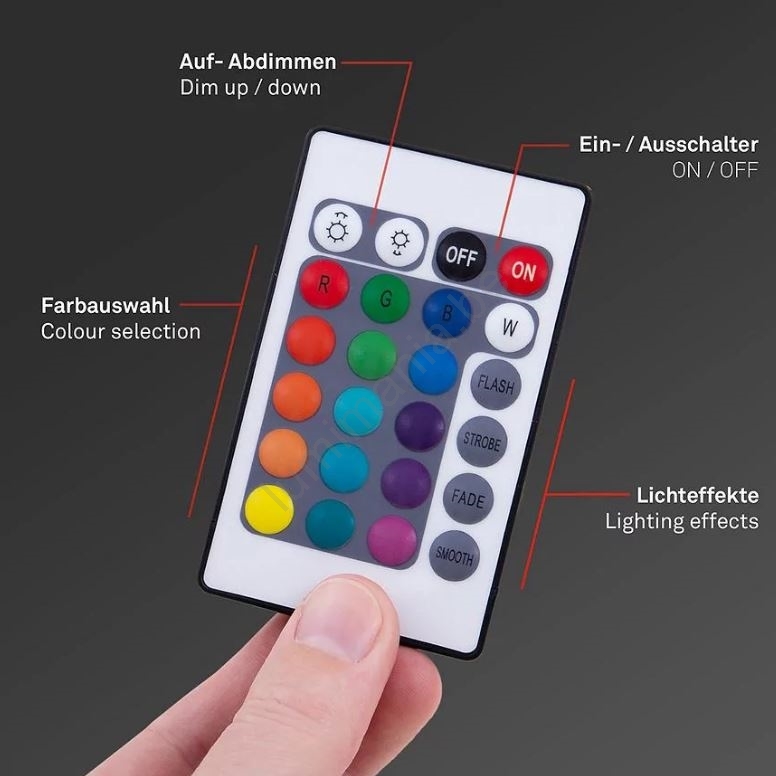• Bevat: 5 m LED-strip, afstandsbediening, transformator, 1,5 m kabel en bevestigingsclip.