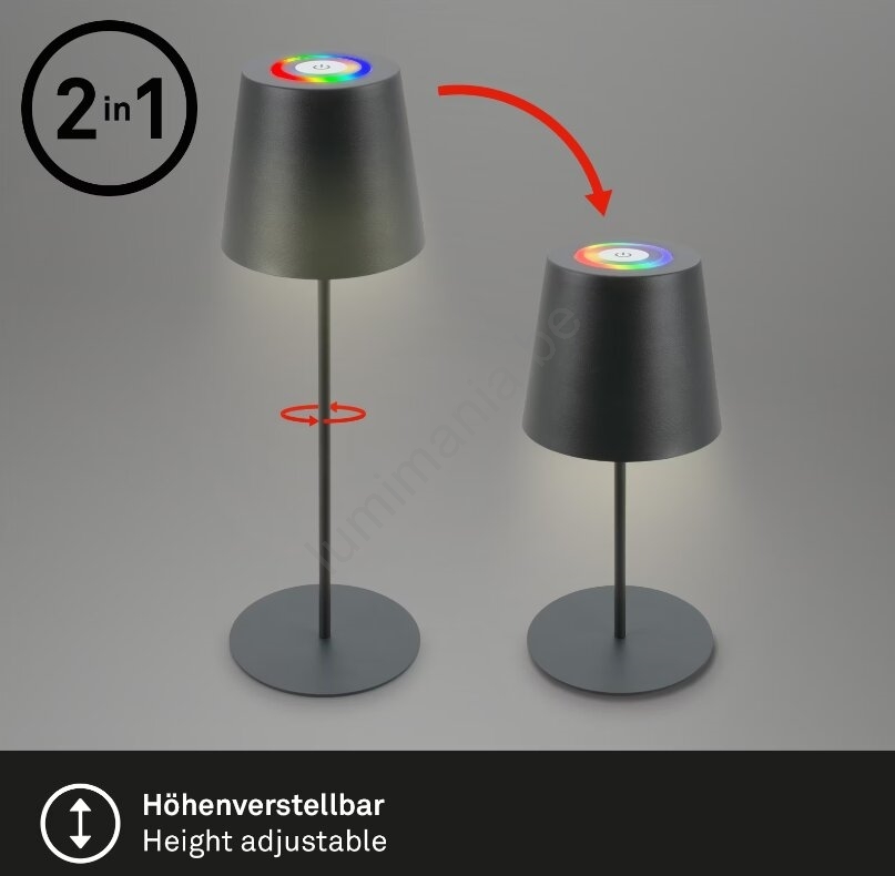 • Briloner 7507015 - LED RGB-dimbare oplaadbare buitentafellamp 2-in-1 LED/2,5W/5V IP44 1200 mAh antraciet