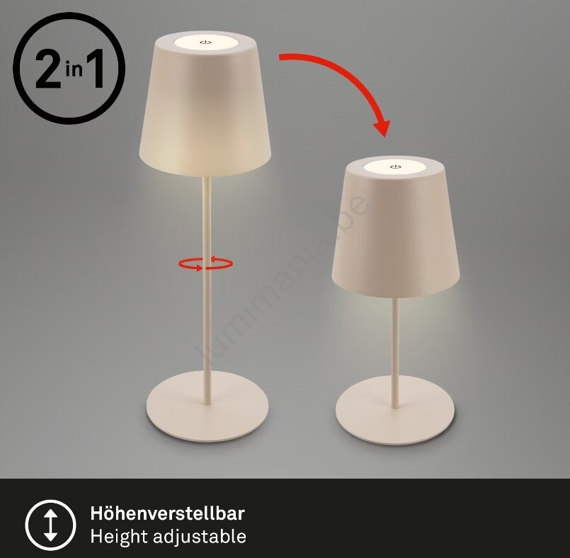 • Briloner 7508011 - Dimbare oplaadbare LED buiten tafellamp 2-in-1 LED/2,5W/5V IP44 beige