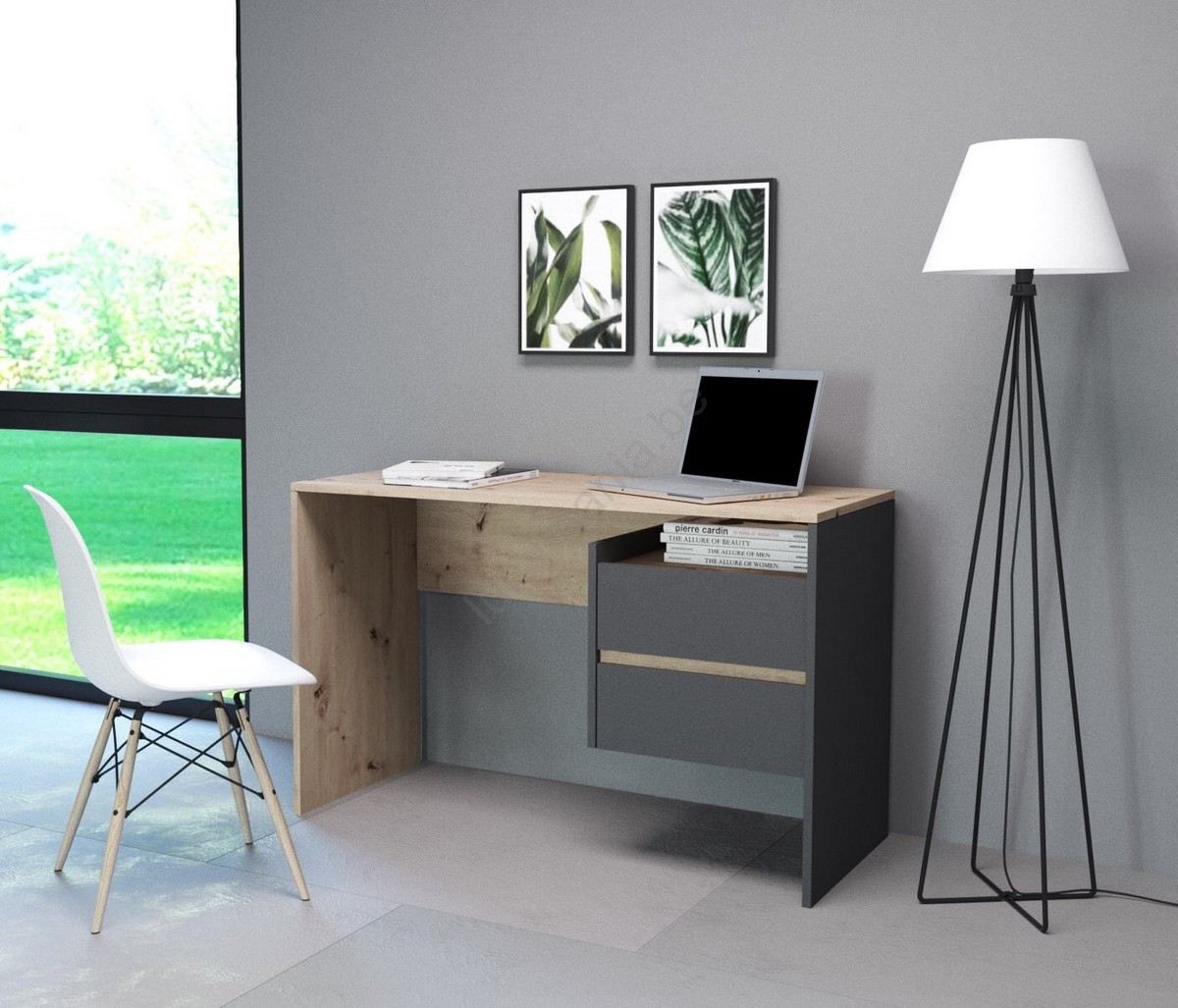 • Bureau met lades MARLO betongrijs/wit