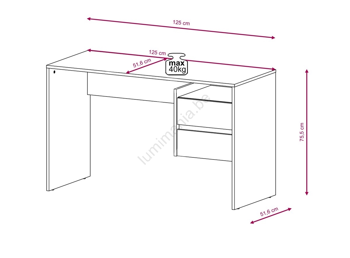 • Voorzien van een zijplank met twee lades, ideaal voor het opbergen van boeken, kantoorbenodigdheden of decoraties.