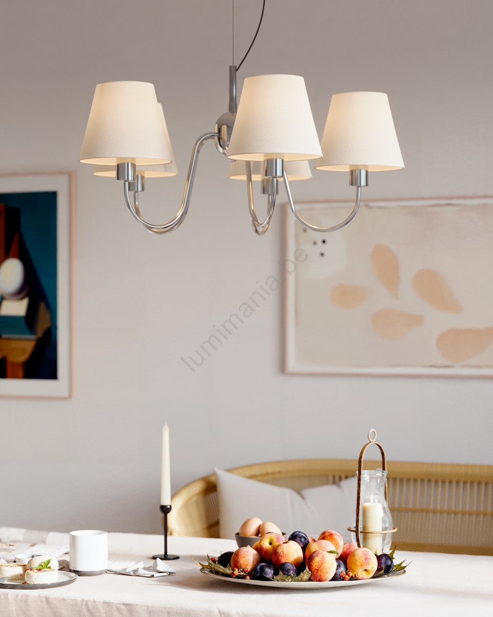 ByRydens - Pendellamp met kabel LYNF 5xE14/8W/230V glanzend chroom/wit kenmerkt een mooi en functioneel ontwerp.  Voor het licht is een lamp met E14 fitting geschikt. Hier kunt u andere lampen tegen voordelige prijzen kopen. U heeft een interessante aanwinst voor uw woning.