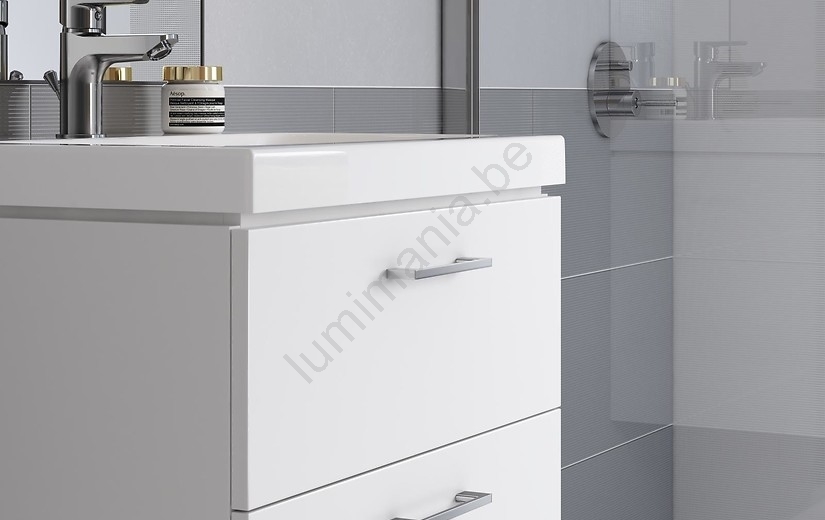 • De kast beschikt over twee ruime lades met softclose en chromen handgrepen.