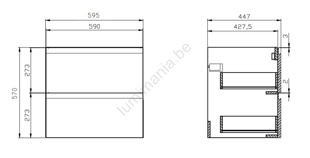 • Het front en de kast zijn gemaakt van 16 mm spaanplaat met een glanzende witte lak.