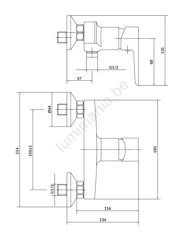 • Bedieningselement: keramische cartridge van 35 mm.