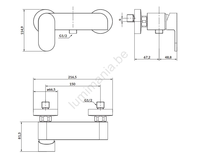 • Bedieningselement: keramische cartridge van 35 mm.