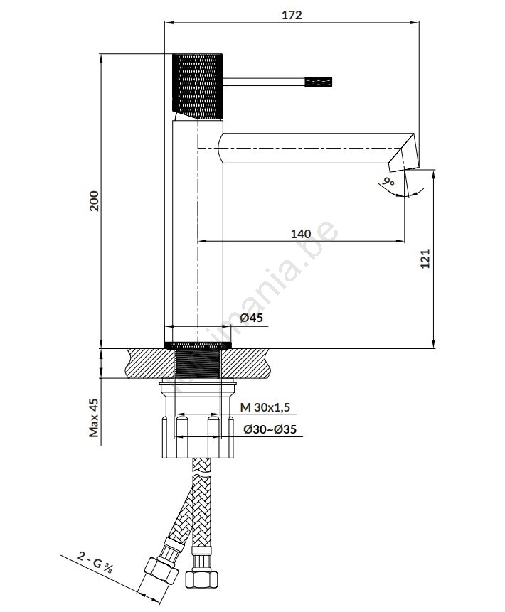• Aansluitslangen van 60 cm lengte zijn inbegrepen.