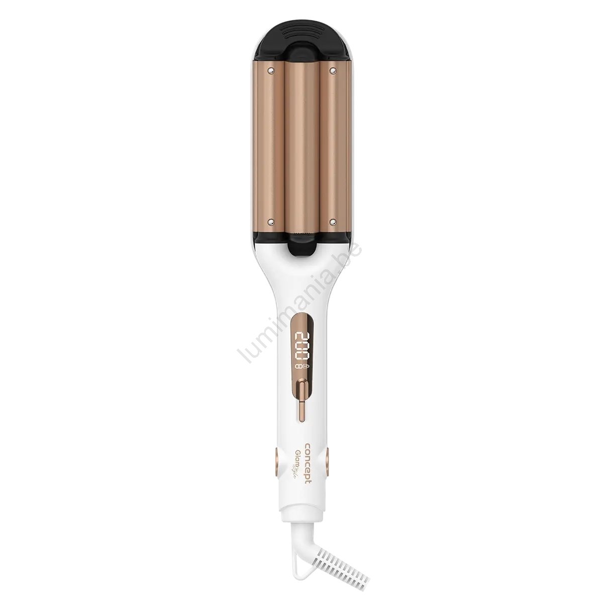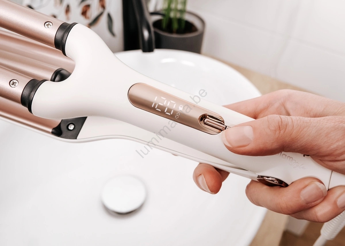 • Drievoudige krultang met keramische coating is een uitstekende hulp voor het snel en eenvoudig creëren van stijlvolle golven.