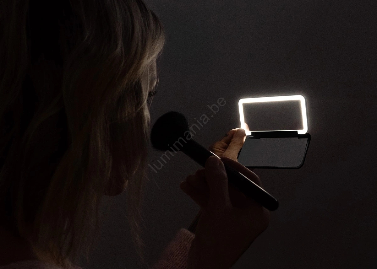 • Het spiegeltje geeft tot 3 uur licht op één acculading en kan eenvoudig via een USB-kabel en powerbank worden opgeladen.