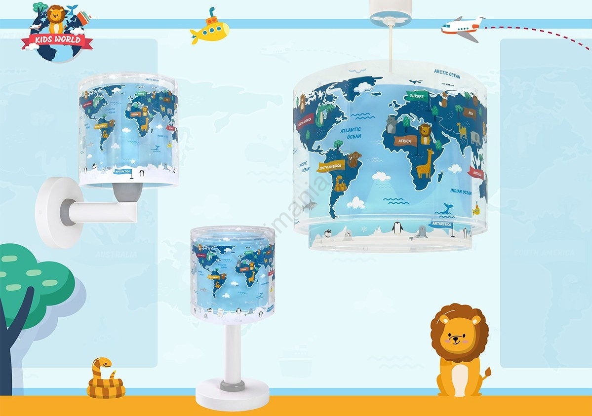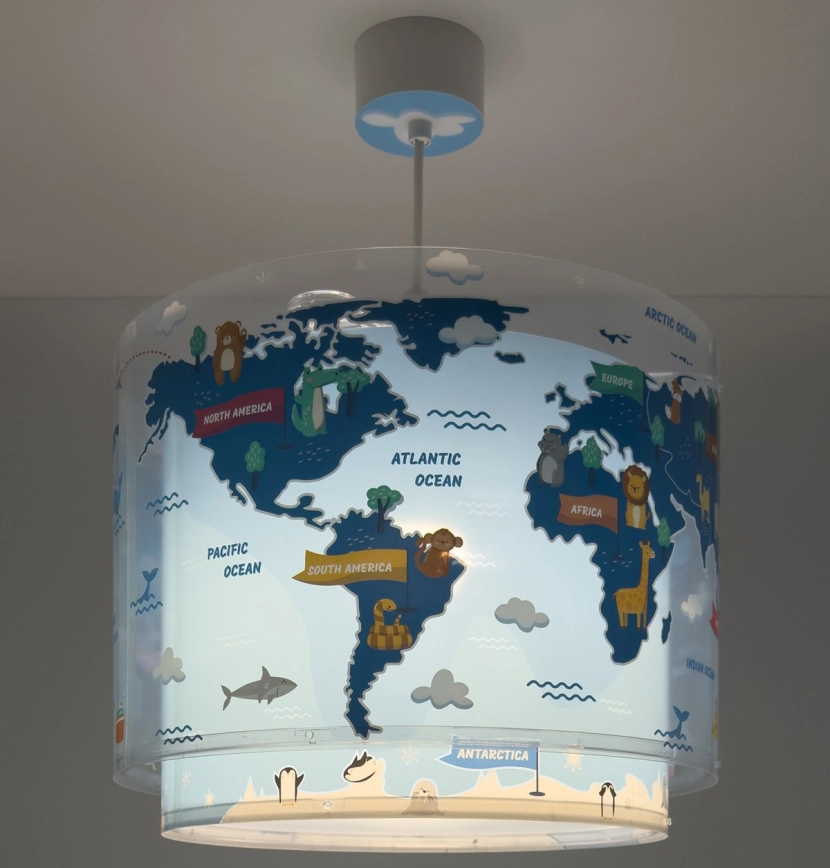 • Dalber 40672 - Kinderkroonluchter WORLD 1xE27/15W/230V blauw