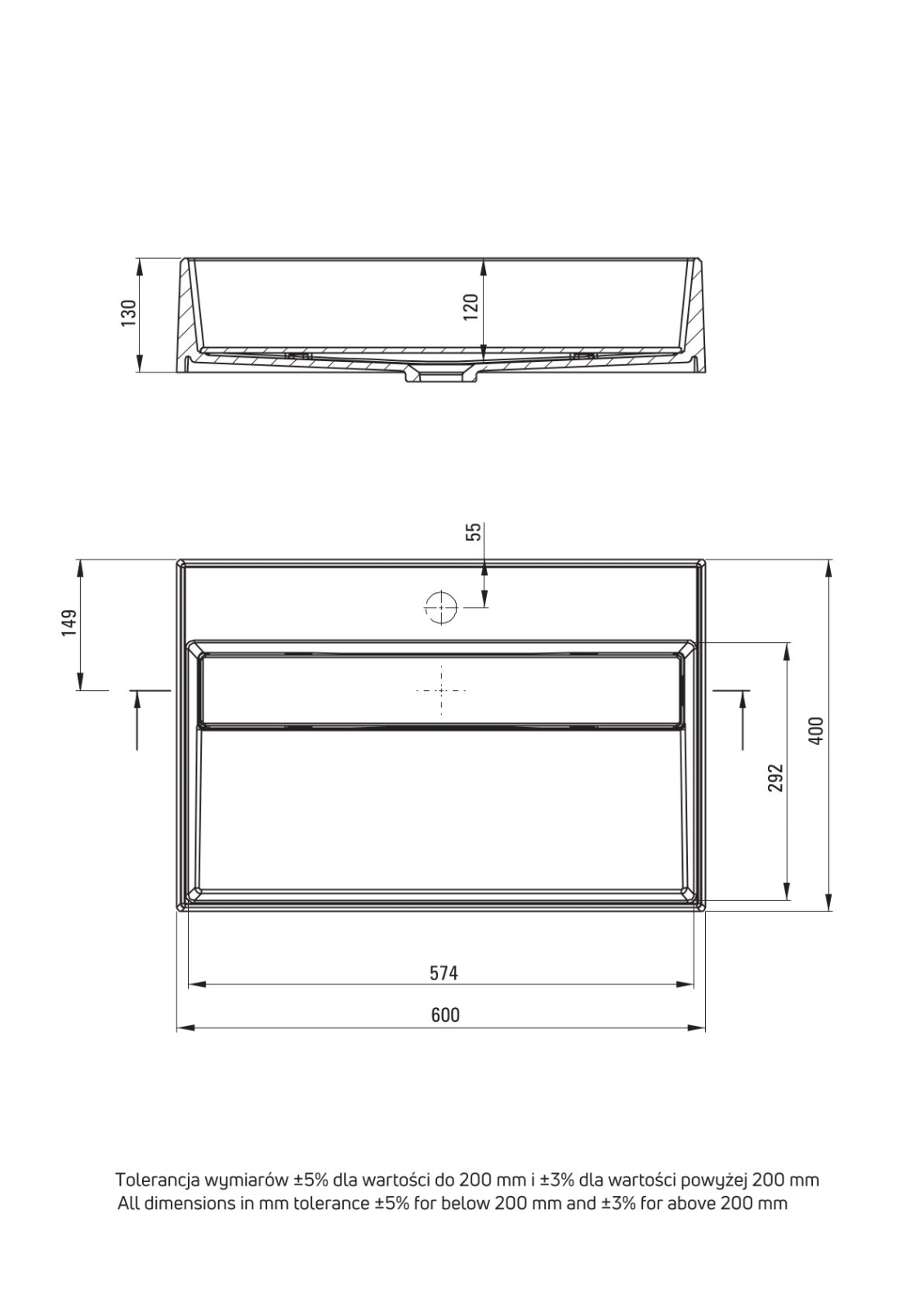 • De wastafel is bedoeld voor plaatsing op het werkblad, wat flexibele plaatsing en combinaties met verschillende typen badkamerbladen mogelijk maakt.