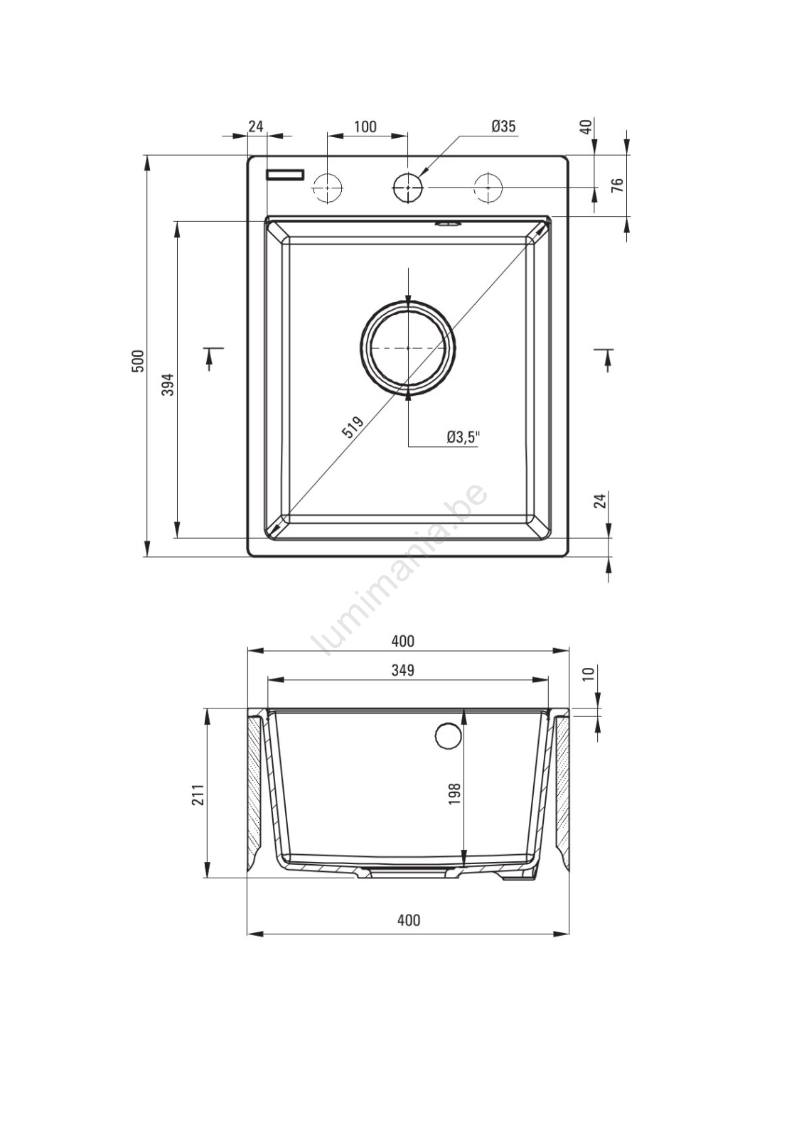 • Dankzij de innovatieve sifon "Space Saver" creëert u onder de spoelbak voldoende ruimte voor efficiënte afvalscheiding of opslag.