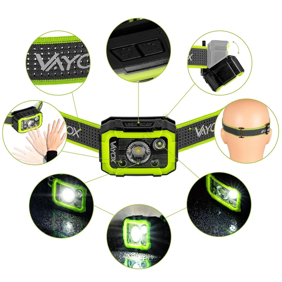 • LED-oplaadbare hoofdlamp met bewegingssensor.