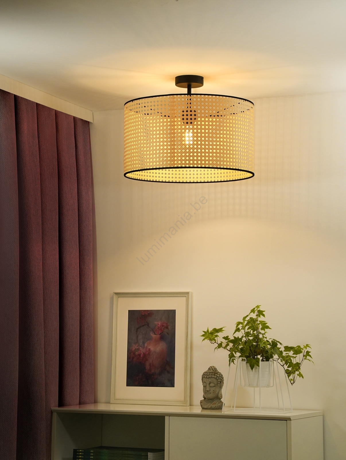 • Duolla - Bevestigde hanglamp ROLLER RATTAN 1xE27/15W/230V diameter 45 cm beige/zwart
