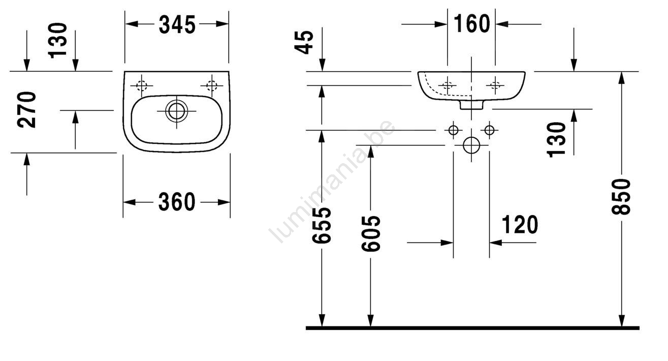 Duravit 7053600092 - Hangende wastafel D-CODE 36x27 cm keramiek/glanzend wit